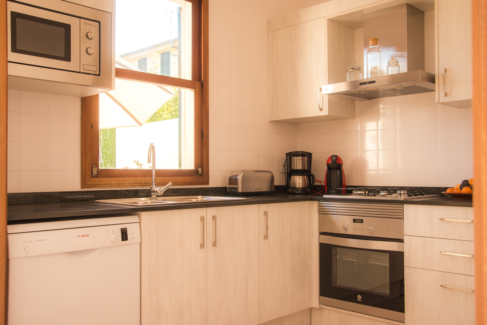 Cocina-comedor con vista a la terraza, piscina y chill-out completamente equipada. Con una gran despensa.