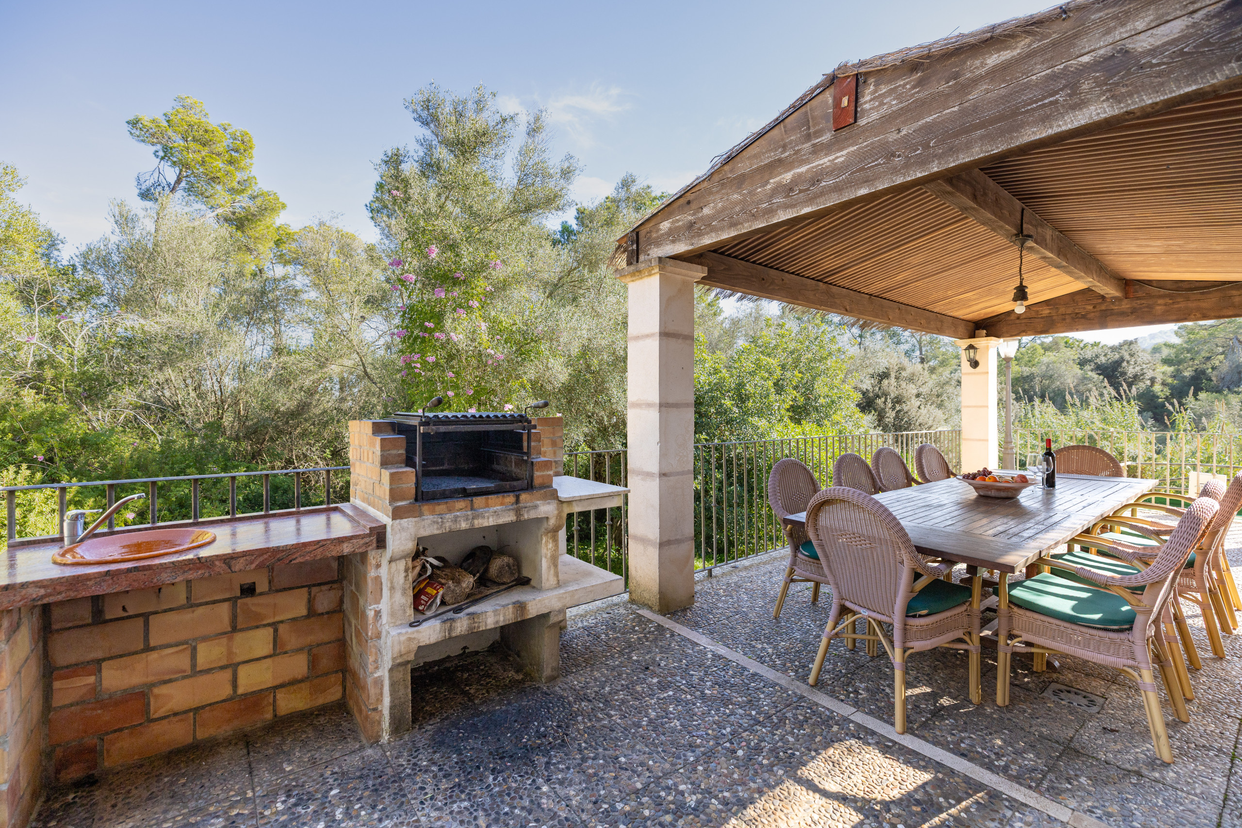 La finca destaca por su espectacular espacio exterior, con un gran jardín, árboles altos que ofrecen sombra natural y una piscina privada de 11 x 8 metros (88 m²) rodeada de cómodas tumbonas. También dispone de una amplia terraza con zona de barbacoa, perfecta para disfrutar del clima mallorquín al aire libre.
