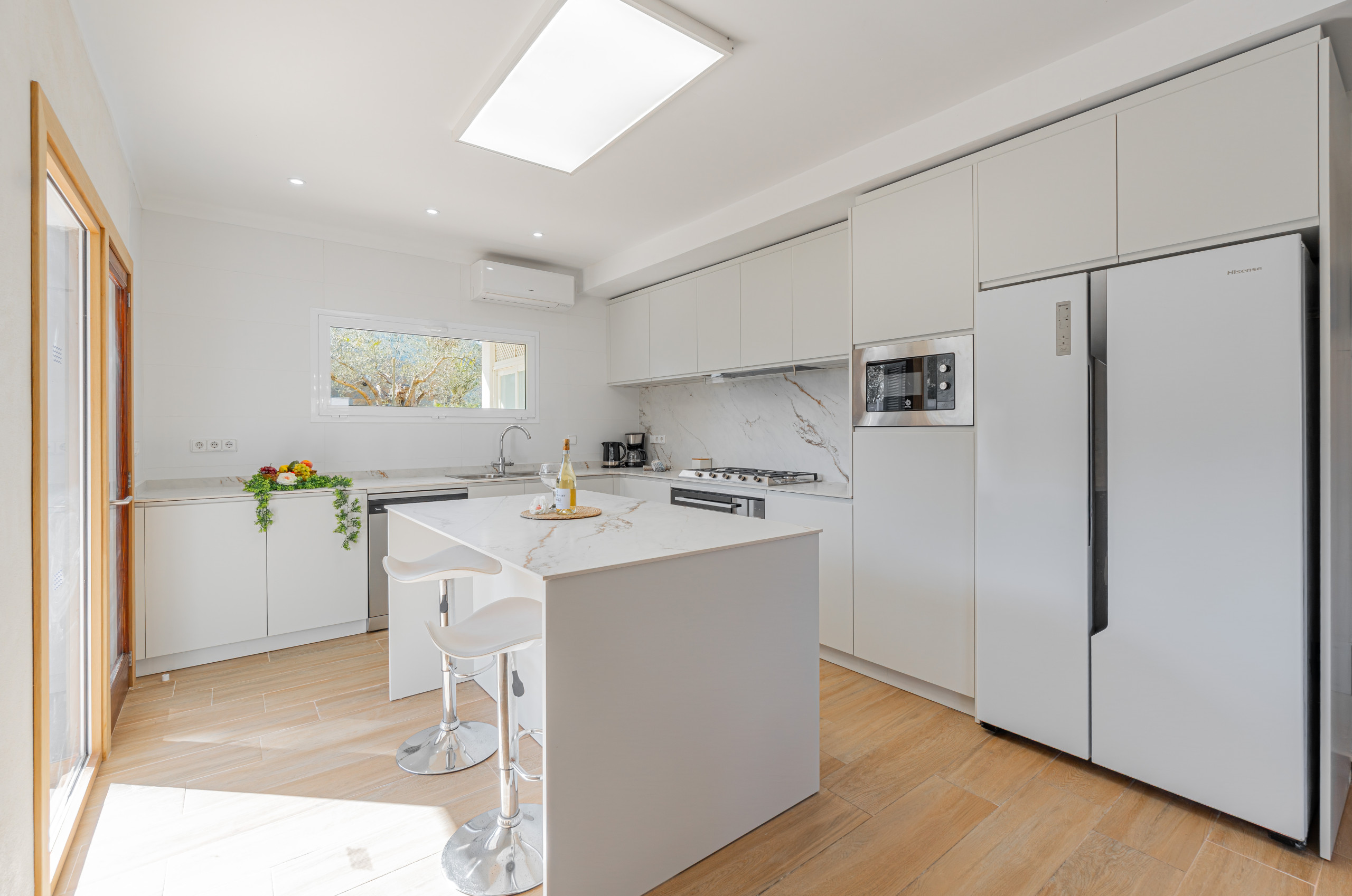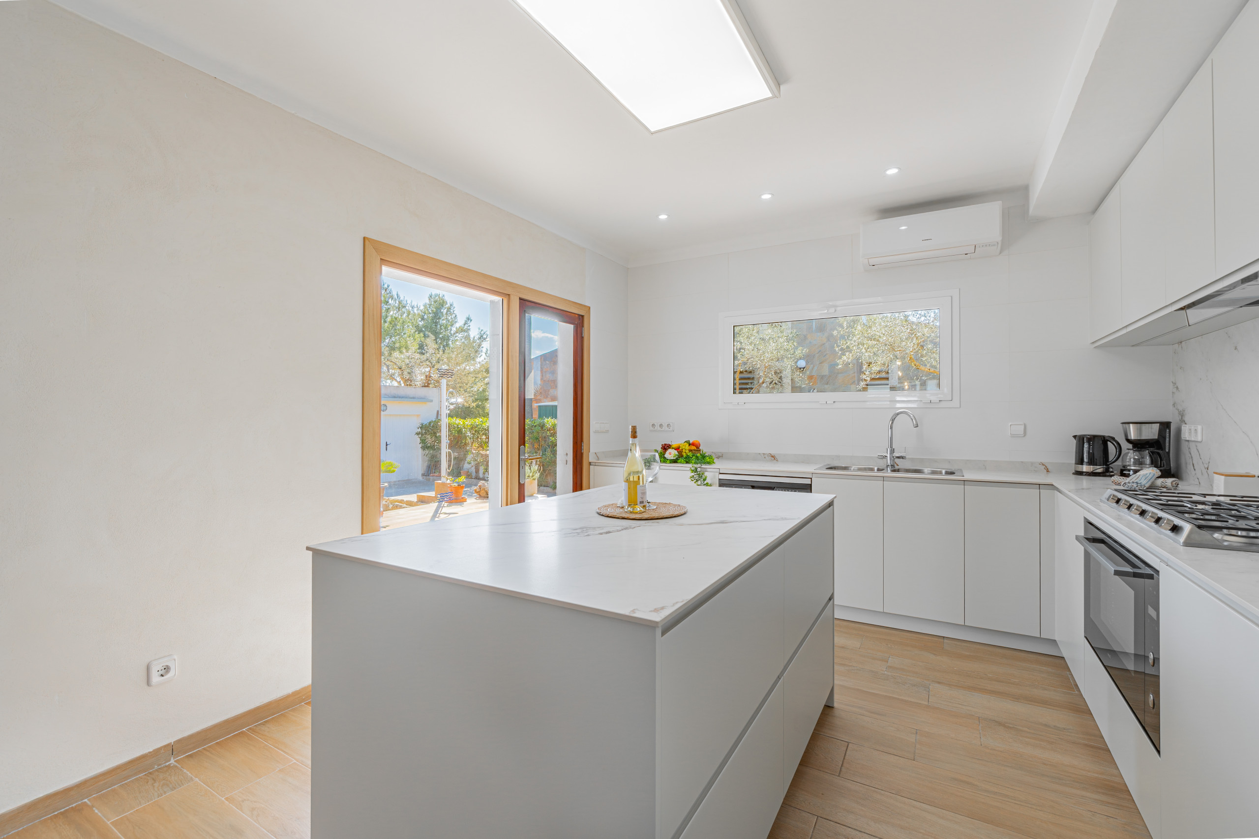 Excellent location, small exclusively looking street. The villa is comfortable. We read earlier comments about bad smell, but it is not true. Loved reading and drinking coffee in the garden. The A/C is in the kitchen and in one bedroom, the other rooms are equipped with ventilators only. Big table on the terrace. Pitty we didnt get coushions for sunbeds. Easy access with key box, as we arrived past midnight. Supermarket 450m away. Responsive administrator-very good communication regarding our needs.