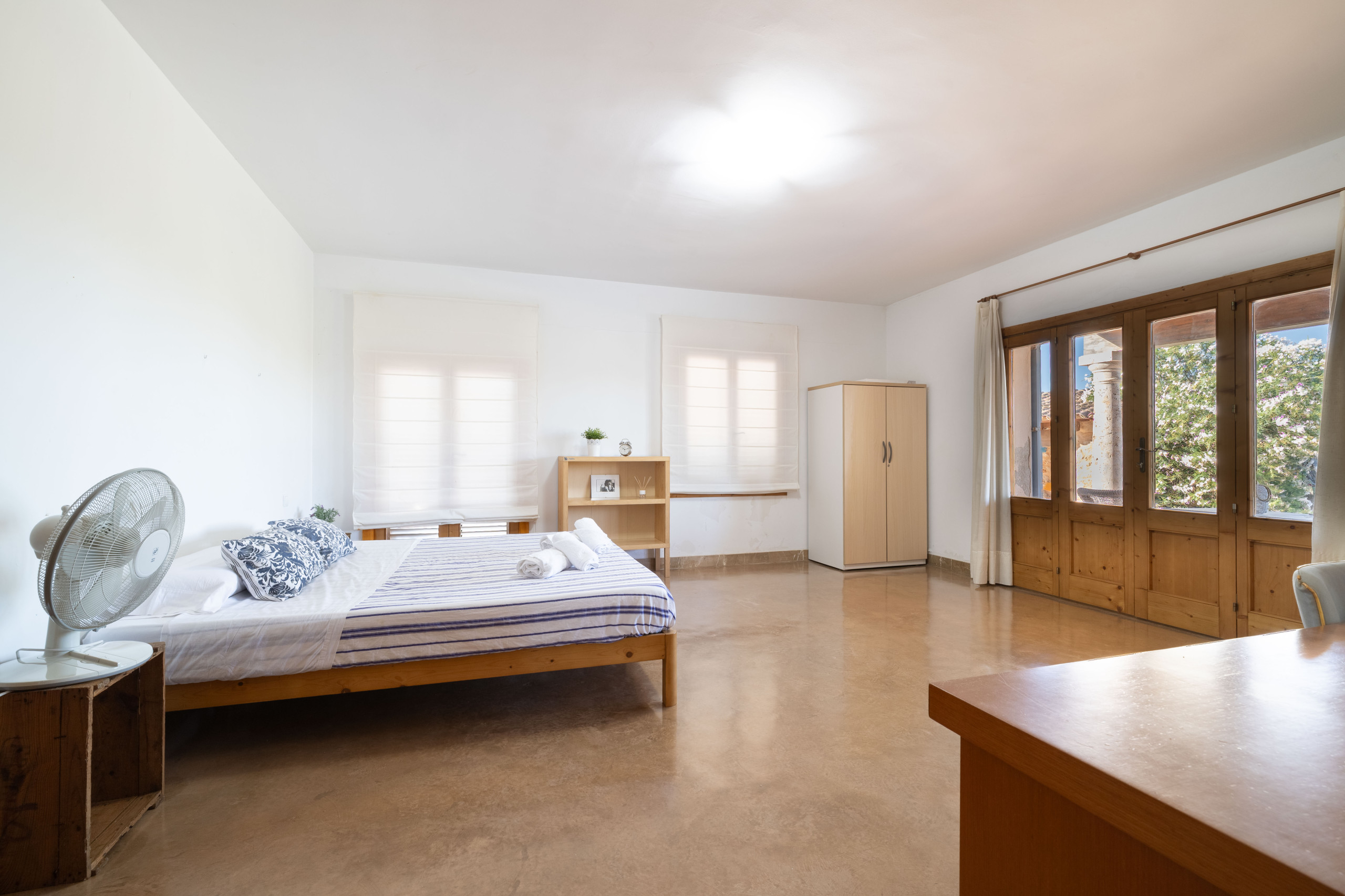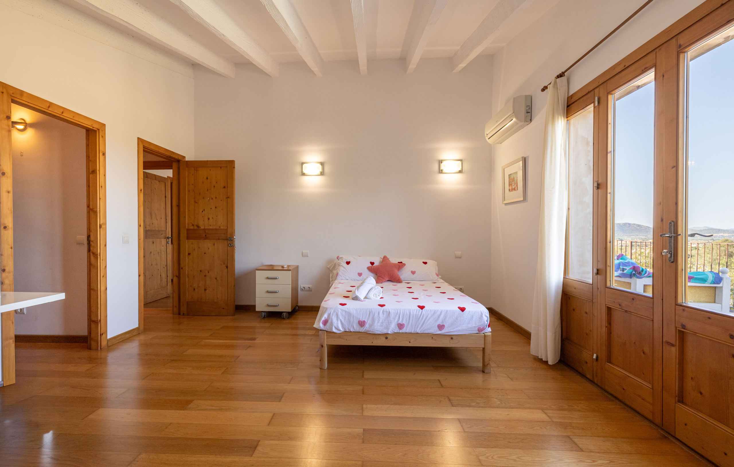 Mit Blick auf das Balearische Meer ist das Ferienhaus Es Fiters in Muro perfekt für einen erholsamen Urlaub. Das zweistöckige Anwesen verfügt über ein Wohnzimmer, eine gut ausgestattete Küche, vier Schlafzimmer und vier Badezimmer und bietet somit Platz für bis zu acht Personen. Zu den weiteren Annehmlichkeiten gehören WLAN, Fernseher, Klimaanlage in den Schlafzimmern, Waschmaschine und Trockner. Für Gäste, die ein Kinderbett benötigen, steht ebenfalls eines zur Verfügung. Die Unterkunft bietet einen privaten Außenbereich mit Swimmingpool, offener Terrasse, überdachter Terrasse, Balkon und Grillplatz. Zu den empfehlenswerten Ausflugszielen gehören der Strand von Muro und der Naturpark Albufera. Auf dem Grundstück stehen vier Parkplätze zur Verfügung. Maximal zwei Haustiere sind erlaubt. Rauchen und Veranstaltungen sind nicht gestattet. Diese Unterkunft verfügt über Richtlinien, die den Gästen bei der korrekten Mülltrennung helfen. Darüber hinaus verfügt sie über Funktionen zum Strom- und Wassersparen. Ein Teil des Stroms der Unterkunft wird durch Photovoltaikmodule erzeugt, und für die Isolierung wurden nachhaltige Materialien verwendet. Maximale Anzahl von Haustieren: 2.