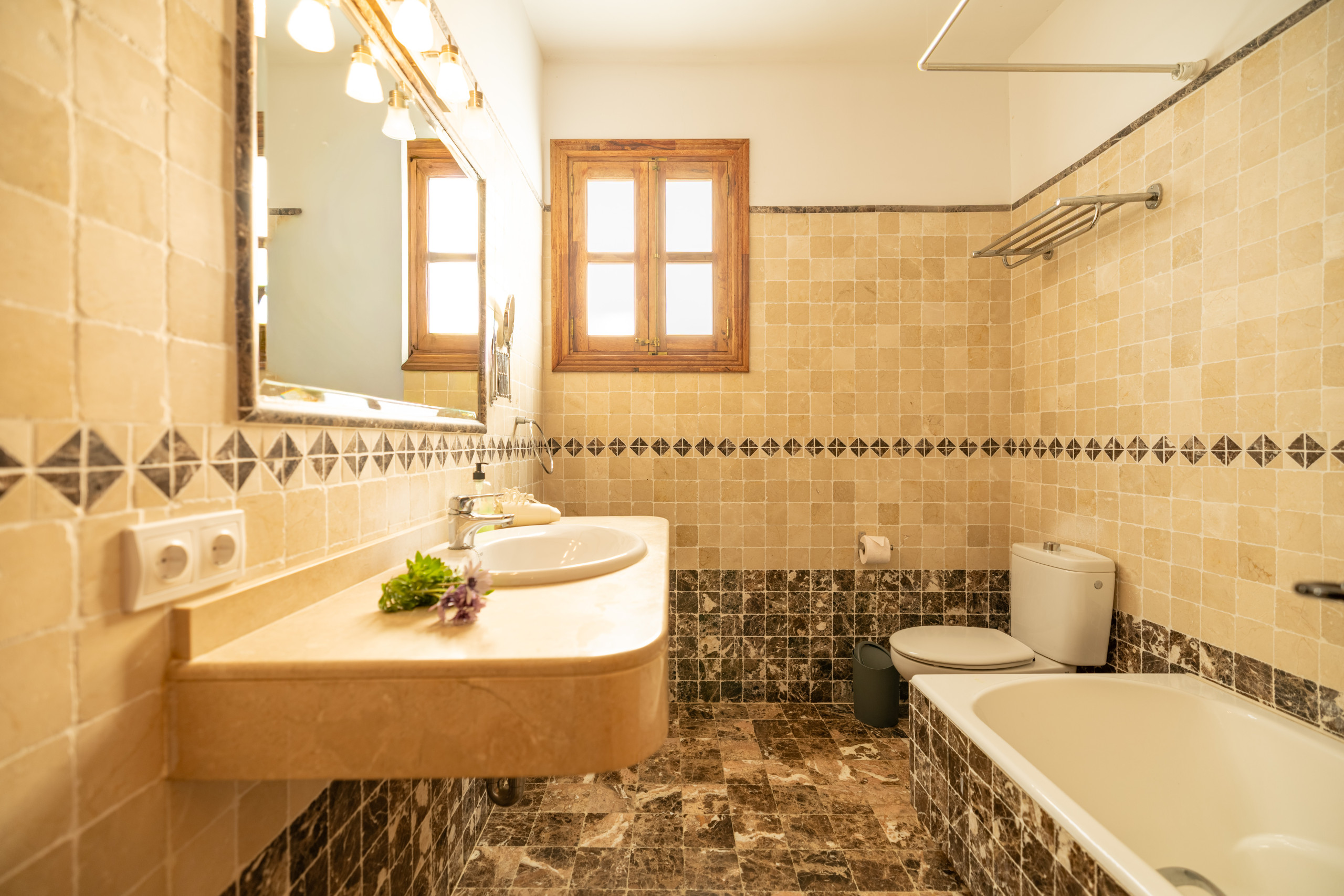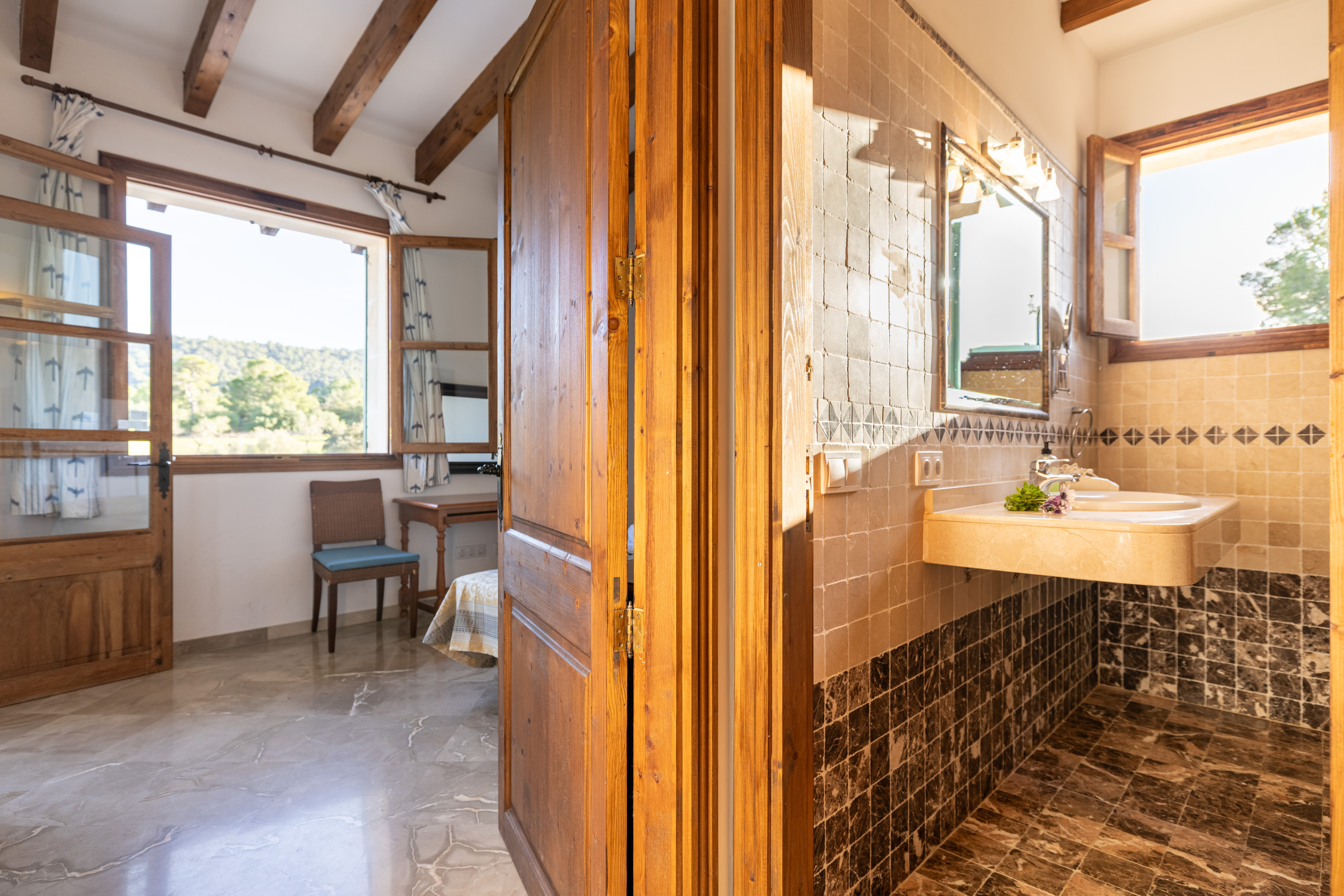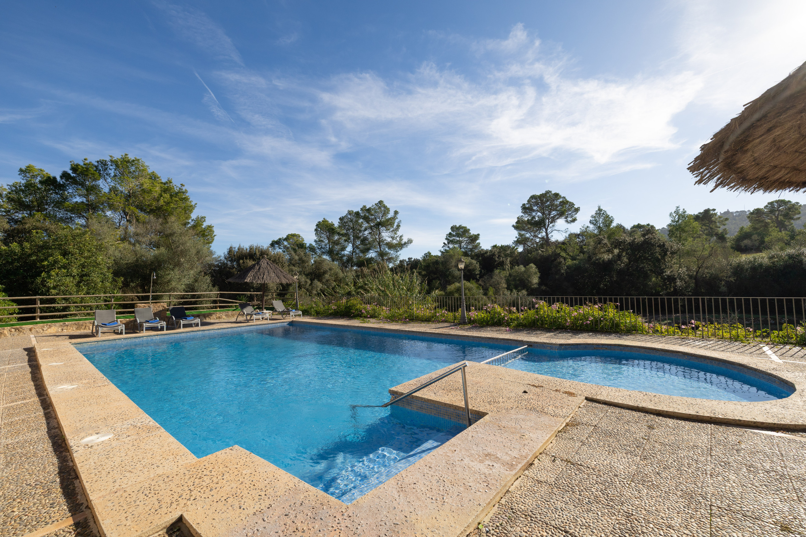 Die Finca verfügt über einen beeindruckenden Außenbereich mit großem Garten, hohen Bäumen, die natürlichen Schatten bieten, sowie einem privaten Pool von 11 x 8 Metern (88 m²), umgeben von bequemen Sonnenliegen. Zudem gibt es eine großzügige Terrasse mit Grillbereich – perfekt, um das mallorquinische Klima im Freien zu genießen.