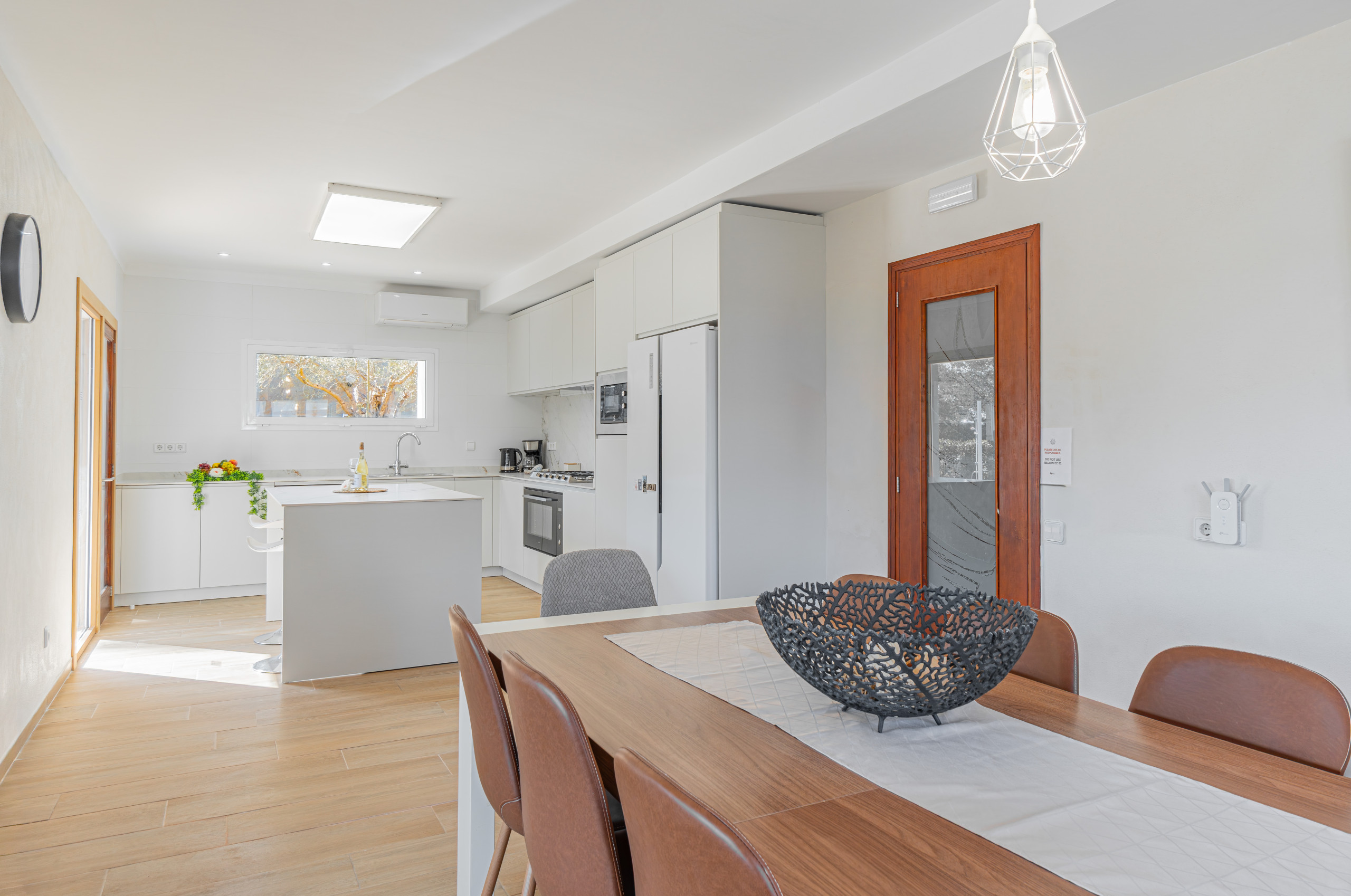 Excellent location, small exclusively looking street. The villa is comfortable. We read earlier comments about bad smell, but it is not true. Loved reading and drinking coffee in the garden. The A/C is in the kitchen and in one bedroom, the other rooms are equipped with ventilators only. Big table on the terrace. Pitty we didnt get coushions for sunbeds. Easy access with key box, as we arrived past midnight. Supermarket 450m away. Responsive administrator-very good communication regarding our needs.